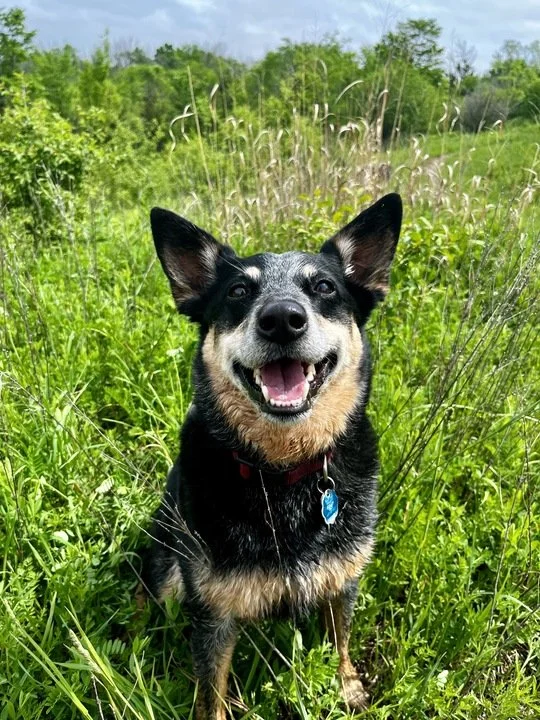 Bleu is an 11 year old Heeler mix. After having family dogs my whole life, I found myself living alone and ready to find a companion of my own. I wasn’t quite sure what breed I wanted, but I did know I wanted a dog that would enjoy hiking, camping and traveling. After scouring the humane society websites for months I saw the cutest litter of heeler mix pups and went to meet them. She stood out to me because she was a little reserved among her excitable siblings but curious; and after some 1-1 time I knew she was the one.