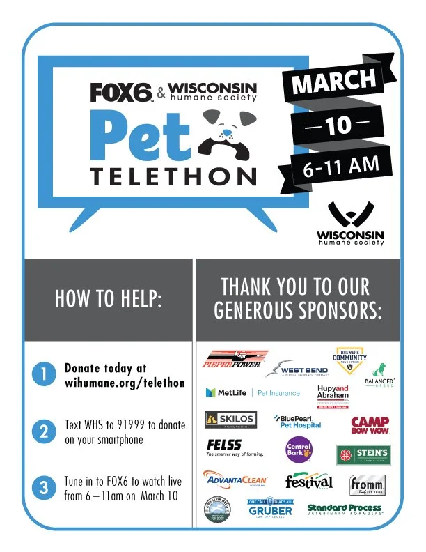 Mark your calendars and get ready to make a difference in the lives of animals in need! Off Leash MKE is proud to support this year's Fox6 & WHS Pet Telethon, an annual event held to raise funds for the Wisconsin Humane Society (WHS). The telethon will take place on Friday, March 10th, 2023, from 6-11 AM and will be broadcast live on FOX6 News. This is a fantastic opportunity for animal lovers and advocates to come together and support a worthy cause.