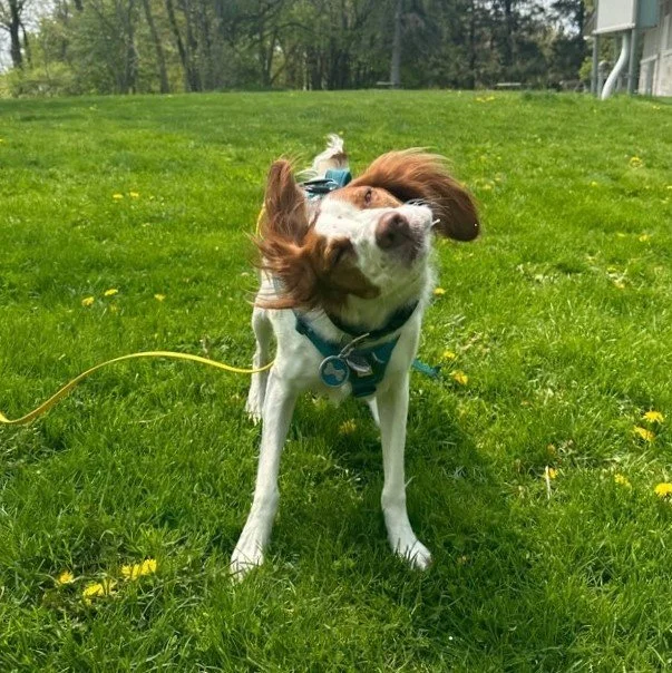 Displacement sniffing is another important calming signal in dogs. When dogs engage in sniffing the ground or their surroundings, particularly in situations that may be stressful or overwhelming, it serves as a way for them to divert attention or communicate their non-threatening intentions. By focusing on scent exploration, dogs can redirect their attention from potential stressors and signal that they are not a threat. Displacement sniffing allows them to create a temporary distraction while they assess the situation and determine the appropriate course of action. Since dogs sniff for all kinds of reasons, context is key in distinguishing whether a dog has found a really good smell, or as a signal of their non-threatening intentions. Recognizing displacement sniffing as a calming signal enables dog owners and handlers to respond with patience and understanding. Allowing dogs the time and space to engage in sniffing activities can help reduce their anxiety and provide them with a sense of security. By respecting their need to explore through scent, we can support their emotional well-being and promote a more positive and calming environment for them.