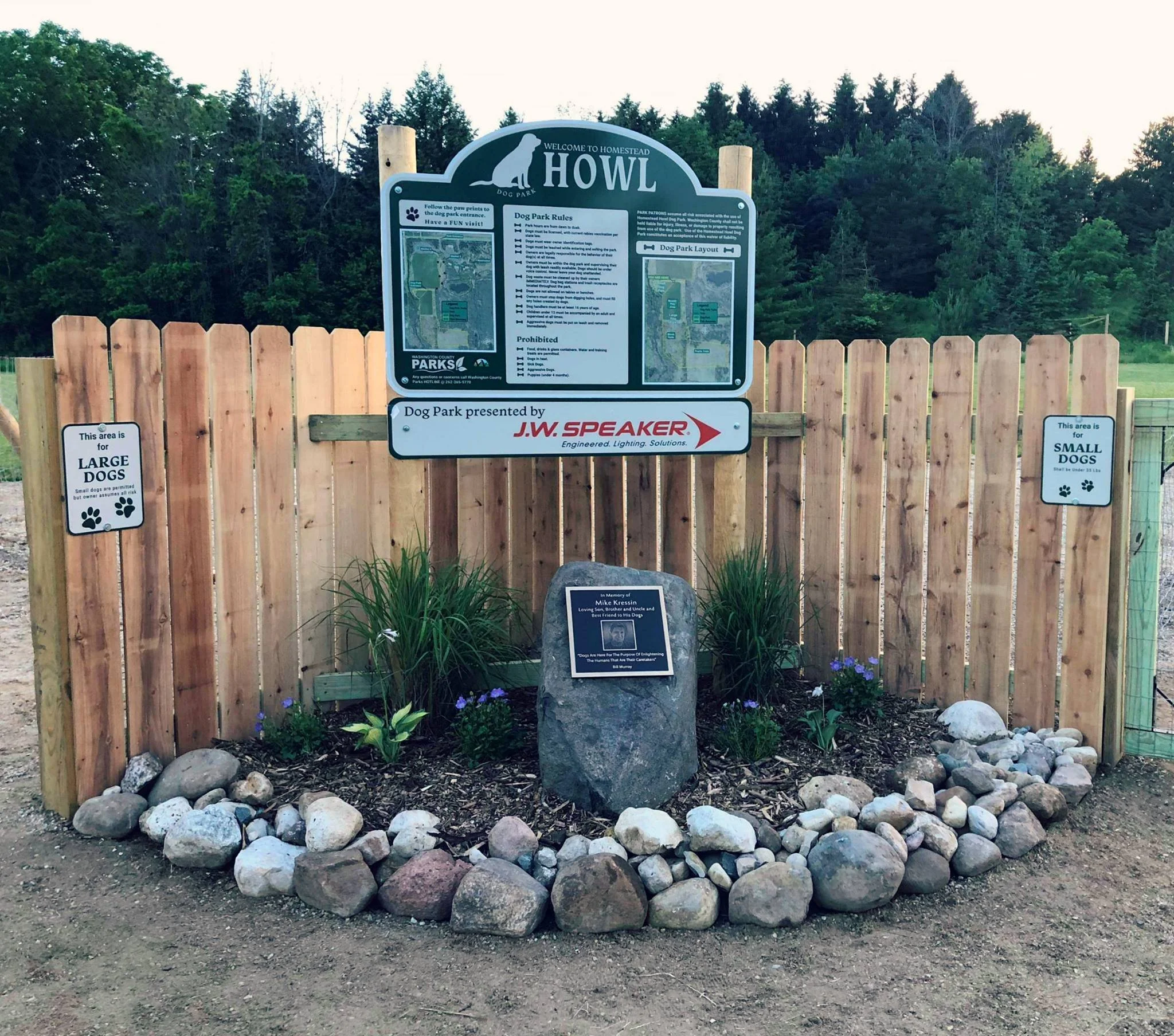 Homestead Howl is a dog park nestled within Homestead Hollow County Park, providing a haven for your furry companions since 2018. This well-designed park features separate fenced areas for small and large dogs, each offering ample space for play and exercise. The small dog area boasts a cozy open field, while the large dog area offers an expansive field and a looping trail that leads into a serene prairie and wooded area. With the path fully enclosed by a fence and a convenient gate leading to a trail outside the dog park, you can rest assured that your dogs can explore and enjoy their surroundings safely and freely.